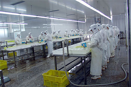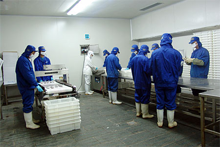 本公司是一家以水產(chǎn)品加工為主的出口型企業(yè),于2004年9月建成并正式投產(chǎn)。公司廠房完全按照歐洲聯(lián)盟的標(biāo)準(zhǔn)設(shè)計施工,目前占地14000平方米,建筑面積8000平方米,其中加工車間1600平方米。公司日速凍能力達(dá)100噸,儲藏庫容量為5000噸,主要加工蟹類、貝類、頭足類及魚蝦類水產(chǎn)品,產(chǎn)品銷往日本、東南亞及歐盟地區(qū)。